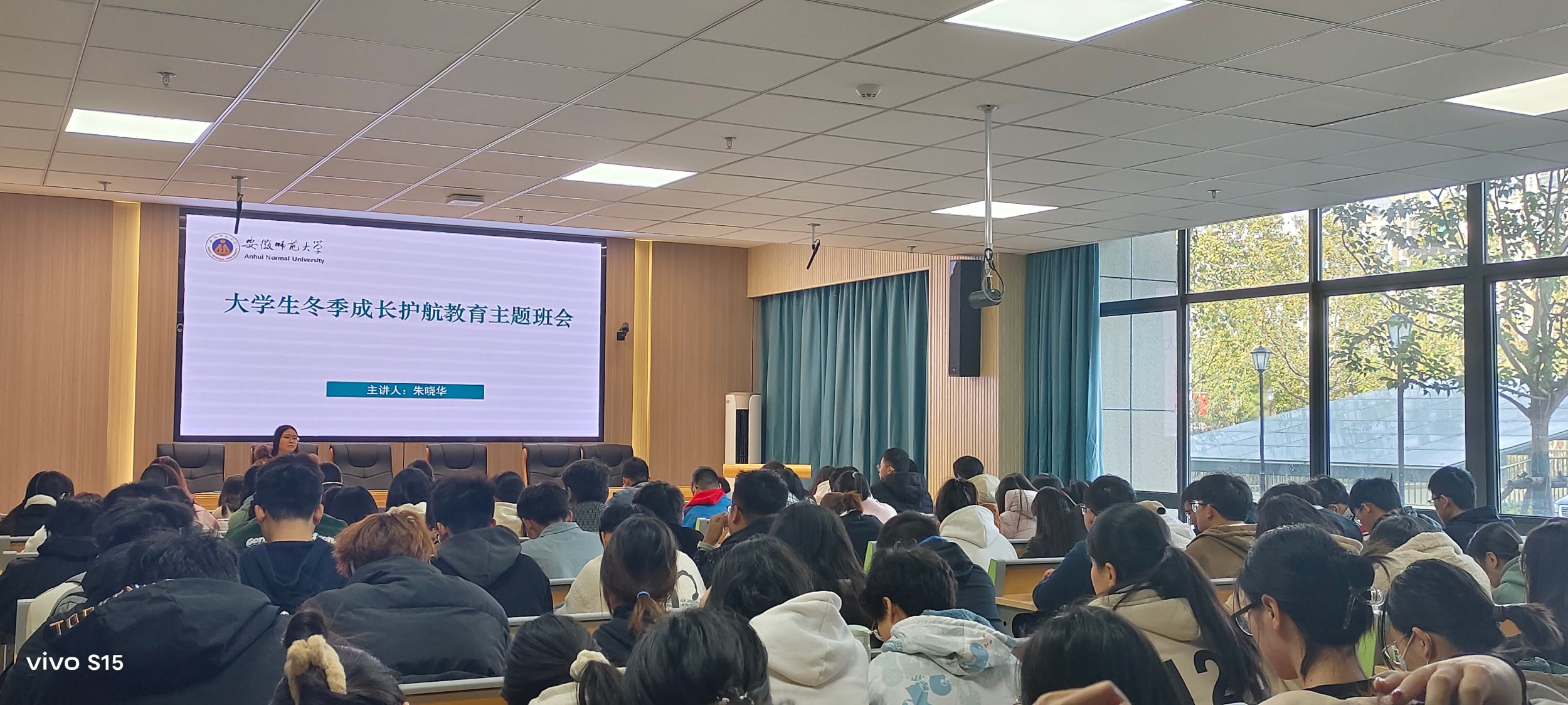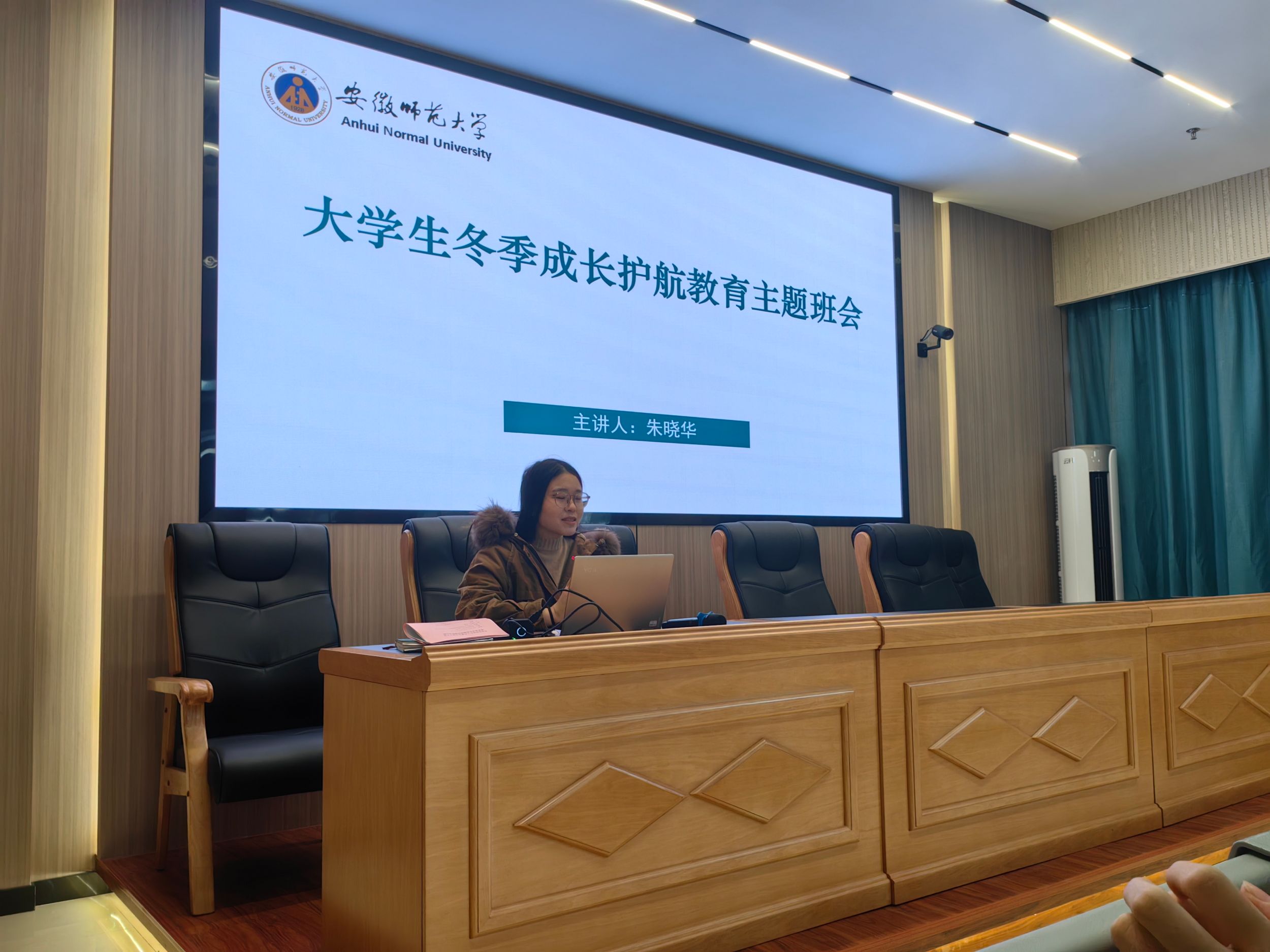 本网讯(图/洪静 文/梁婉婷)冬季是一个特殊的季节,寒冷的天气给我们的学习和生活带来了诸多不便。为了帮助大家更好地适应冬季的生活,提高自我保护意识,培养良好的生活习惯,2022级历史学师范1班、2班于11月17日上午在公司楼1楼108报告厅召开老员工冬季成长护航教育主题班会,辅导员朱晓华老师主讲。