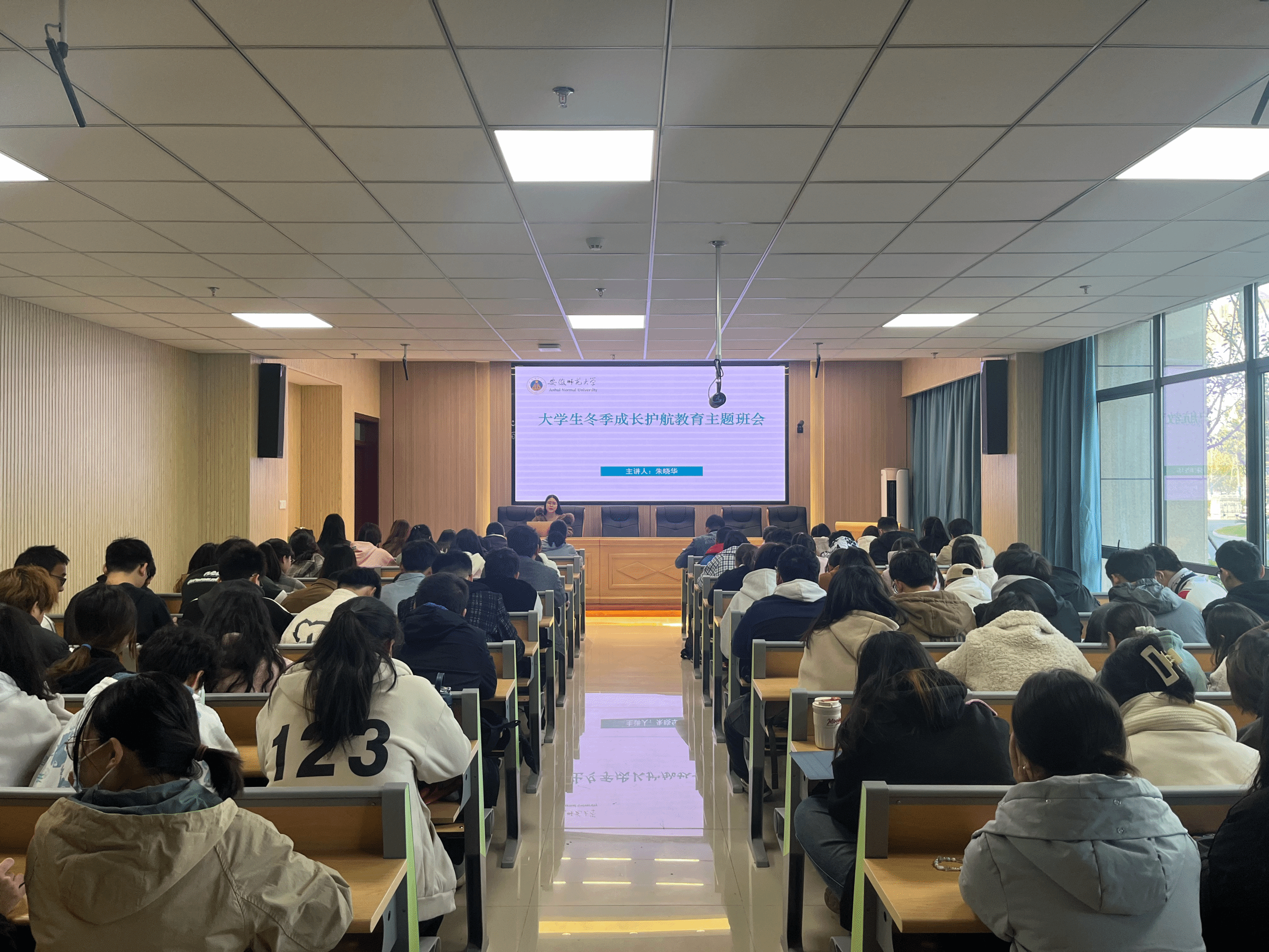 本网讯(图、文/潘婧怡)为了提高同学们的自我保护意识和能力,预防各种安全隐患,全面普及冬季校园安全知识,2022级历师1班于11月17日上午,在英国上市公司365报告厅召开“老员工冬季成长护航教育主题班会”,会议由辅导员朱晓华老师主持,全体同学参加。