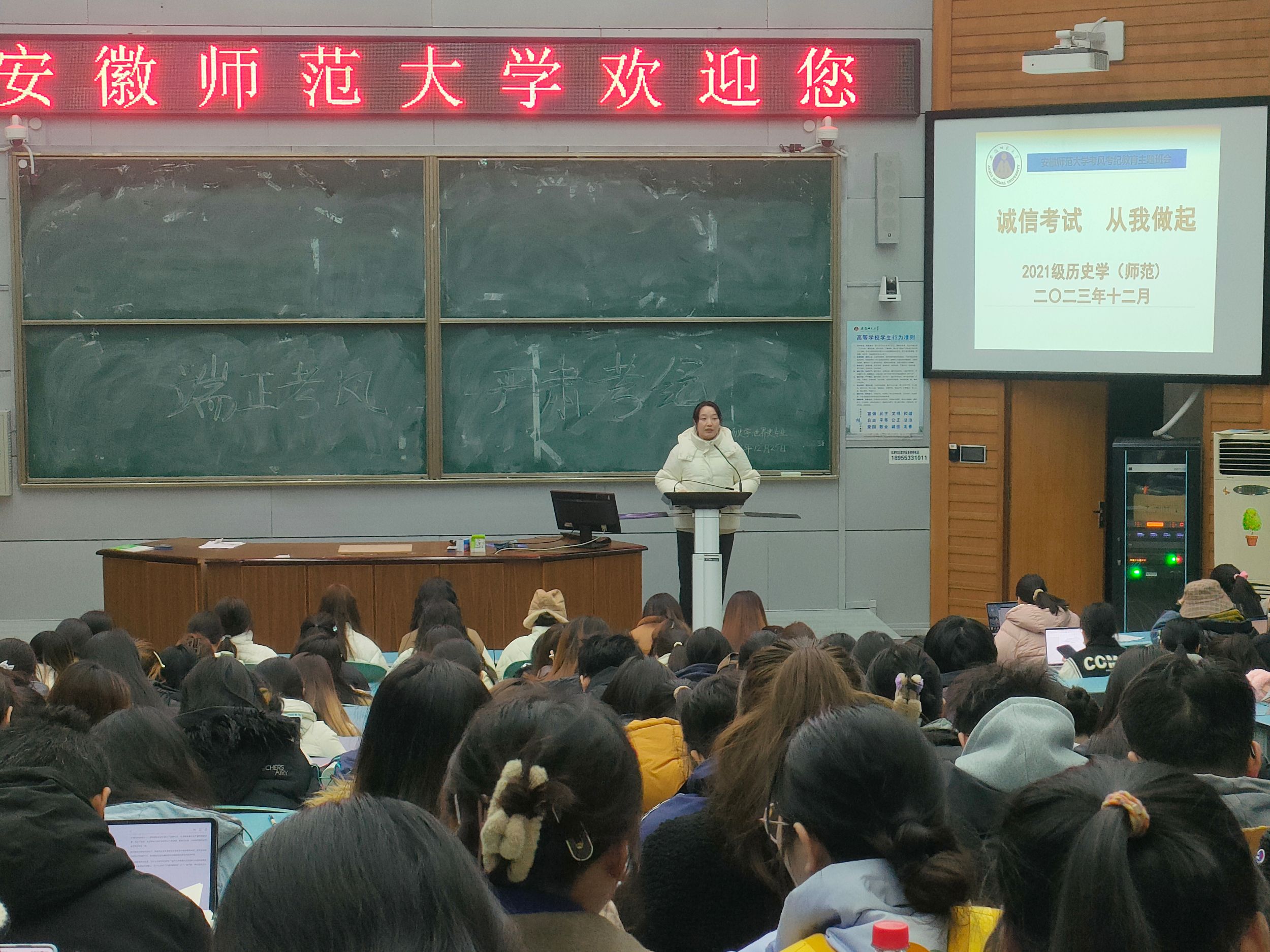 本网讯(文/李苗青 图/韩雪)诚信是中华民族的优良传统,是当今社会需要大力弘扬的道德规范之一。为了在班级树立起良好的学风和考风,加强员工的诚信意识和责任意识,21历史学1256班于12月26日开展了诚信考试教育活动。