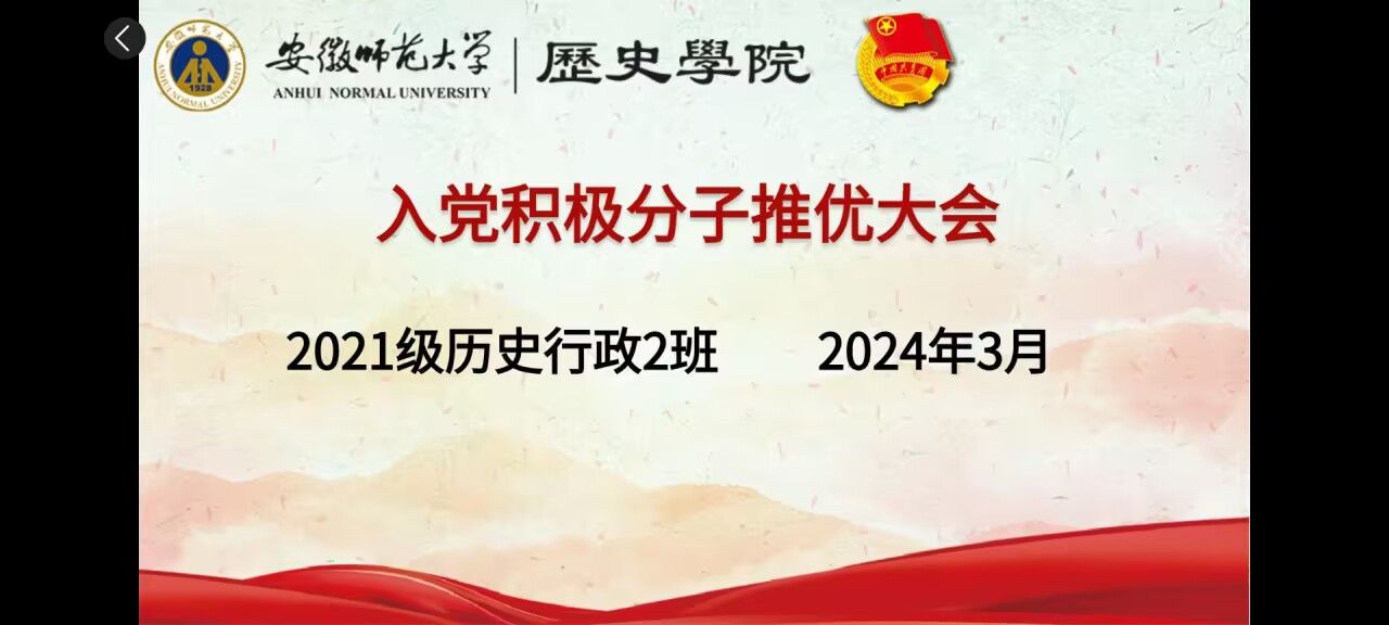 本网讯(图/文 崔雯)为进一步引导做好在班级优秀共青团员中推荐入党积极分子工作,扩大入党积极分子队伍,21级历史学师范1256班于3月6日召开了入党积极分子推优大会。会议由团支书主持,21历史1256班全体同学共同参与。