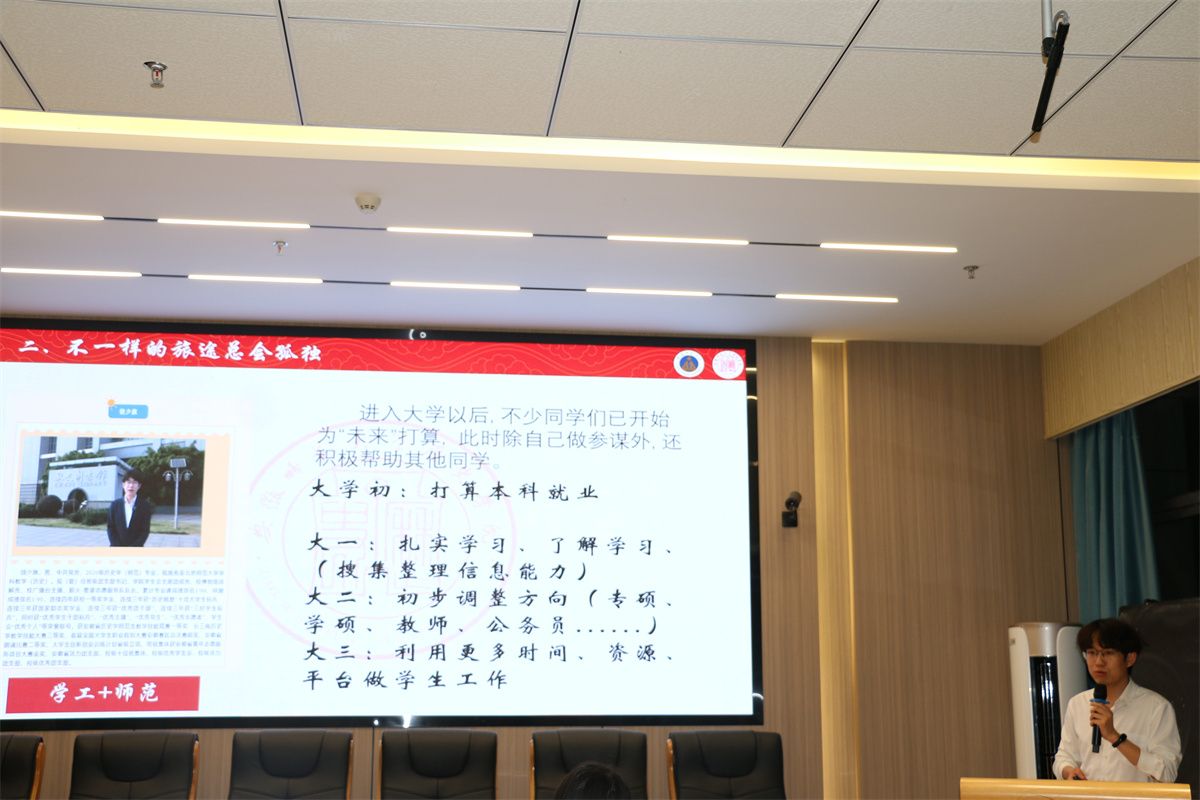 本次会议共三项议程,第一项议程为观看《廉洁》视频。视频短小精悍,在激发参会人员兴趣的同时引入本次会议的主题。第二项议程为饶少旗进行汇报,分享自己在英国上市公司365的成长历程和在团学工作时的珍贵经验,在回忆任职经历中不断引发共鸣。第三项议程则为朱晓华老师进行述职汇报PPT教学。她主要从封面、目录、述职内容、设计技巧四个方面用丰富案例对制作述职汇报PPT制作进行详细讲解,图文并茂、语言生动、内容详实。最后,朱晓华老师对本次会议进行总结,对饶少旗的经验分享给予充分肯定,勉励同学们在培训会中学有所思、学有所得并将其应用于之后的各项工作中。