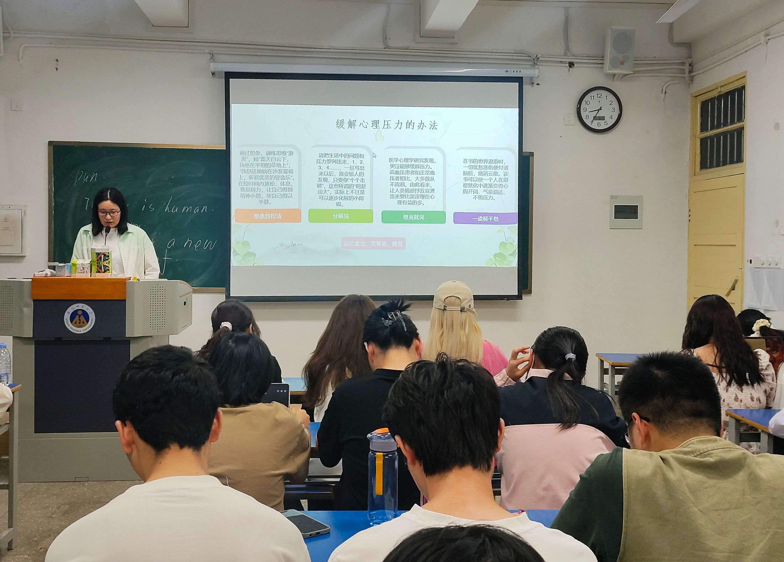 随后,胡文新介绍了一些缓解心理压力的方法。同学们可以尝试通过冥想放松、分解法、“想哭就哭”、“一读解千愁”、运动锻炼、音乐放松、与朋友交流等方式来释放压力,培养积极乐观的心态,以更好地面对生活中的挑战和困难。