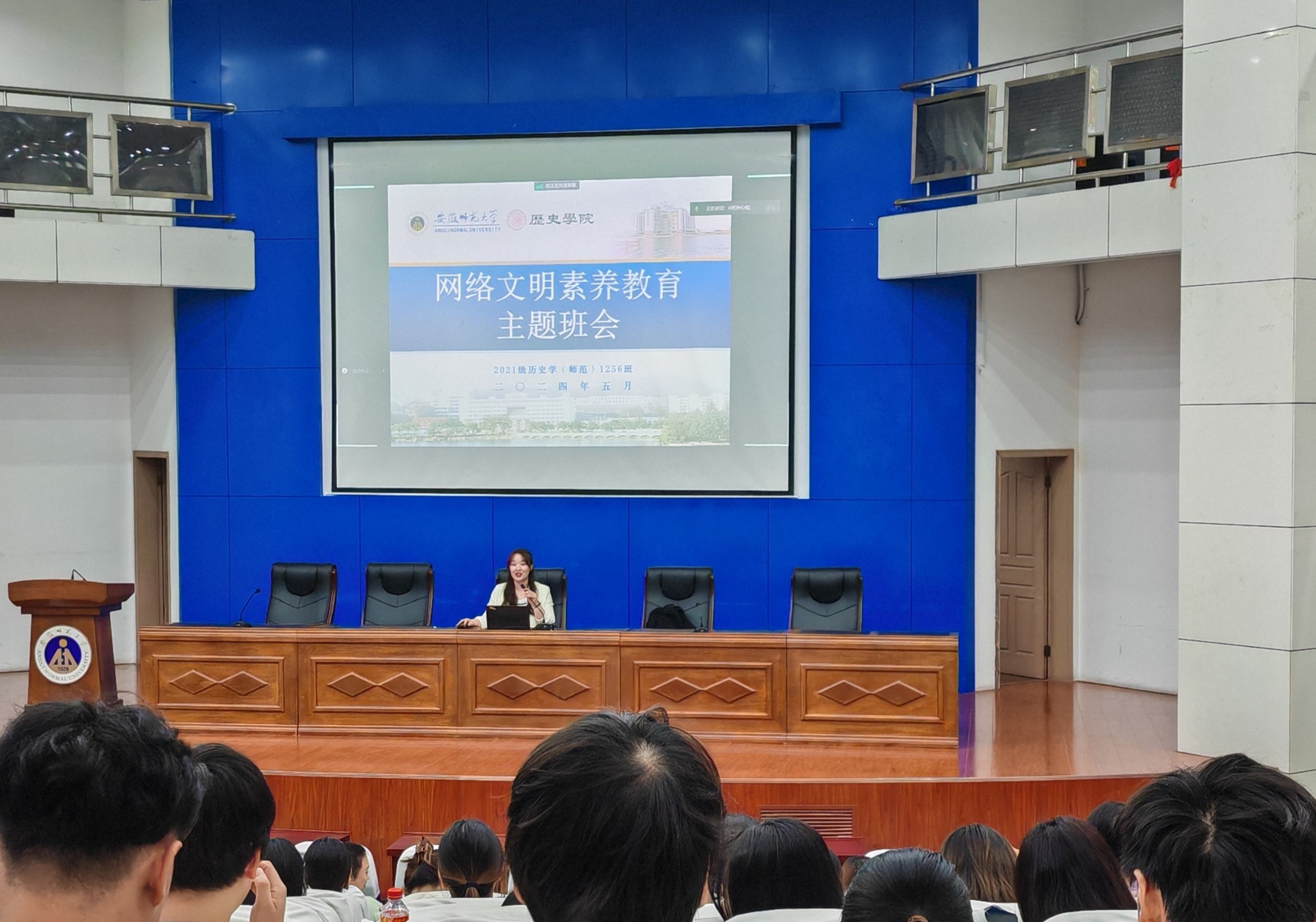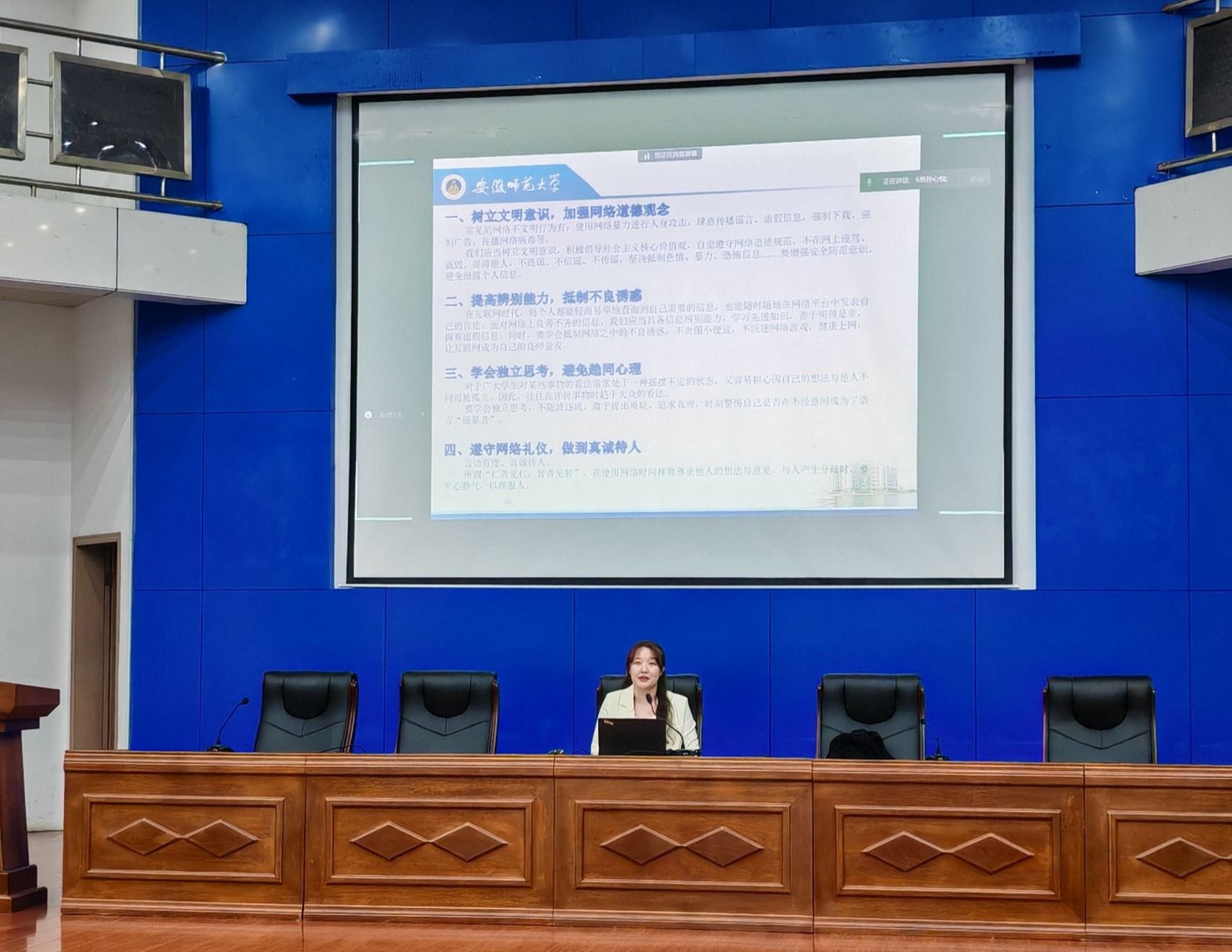辅导员韩雪从树立文明意识,加强网络道德观念;提高辨别能力,抵制不良诱惑;学会独立思考,避免趋同心理;遵守网络礼仪,做到真诚待人四个方面呼吁同学们自觉遵守网络道德规范,增强安全防范意识。同时强调在互联网时代,网络信息良莠不齐,要善于明辨是非,学会独立思考,时刻警惕自己是否在不经意间成为了语言“施暴者”。