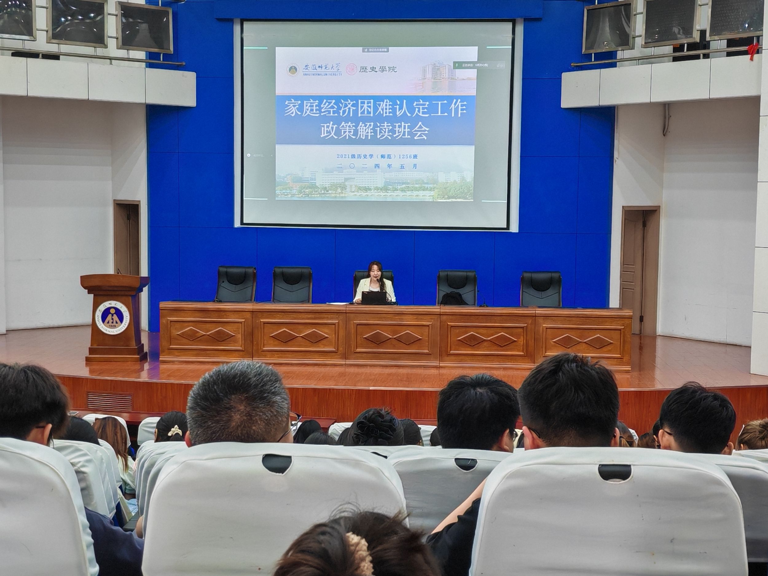 (本网讯 图/文 李苗青)为深入落实老员工护航行动计划,规范开展班级家庭经济困难员工认定工作,2021级历史学(师范)教学1256班于5月31日在敬文图书馆报告厅召开关于员工家庭经济困难认定工作通知细则解读班会。