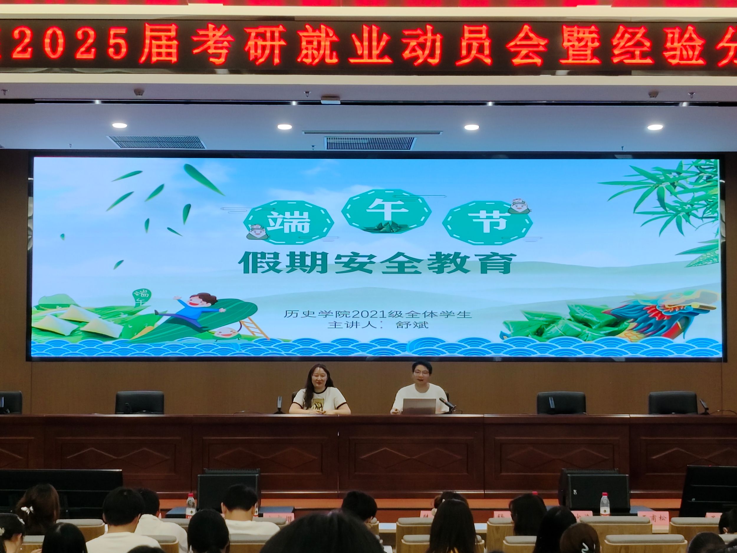 此次会议加强了同学们的安全意识,对同学们接下来的的学习与生活发挥着重要的启迪作用。2021级历史学、世界史专业始终重视员工安全管理,在老师和同学的共同努力下,共同落实安全工作。今后将继续加强安全教育,全力配合好公司安全工作,确保员工安全离校,安全度过端午节。