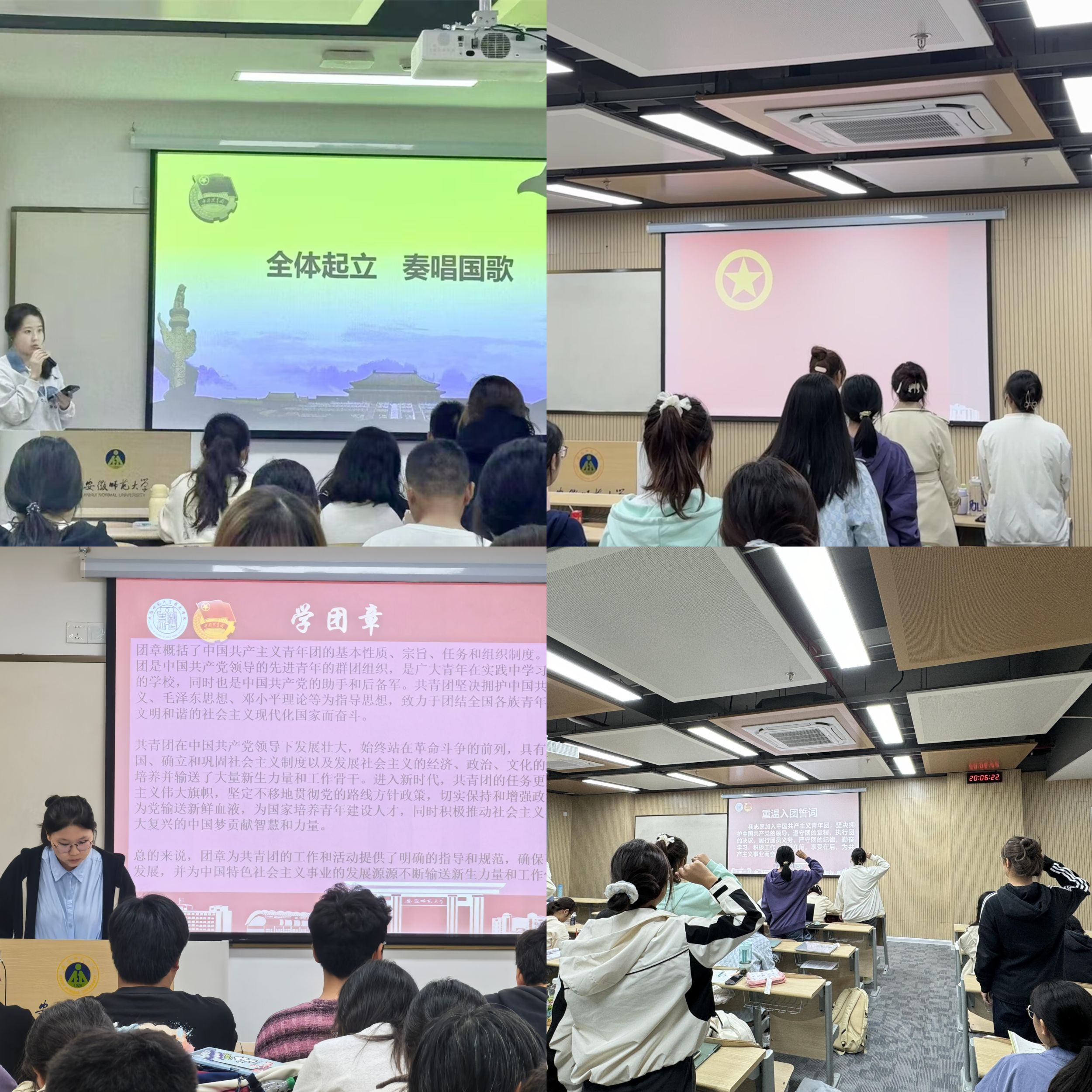 活动现场,2024级各新生团支部组织新生团员合唱国歌、团歌,在班级团支书的带领下认真学习习近平新时代中国特色社会主义思想的核心要义、精神实质、丰富内涵、实践要求等,号召同学们在政治上思想上行动上同以习近平同志为核心的党中央保持高度一致,真正把习近平新时代中国特色社会主义思想转化为坚定理想、指导实践的强大力量。各班团支书对《中国共产主义青年团章程》进行了梳理解读,特别是对青年肩负的使命、团组织的任务和团员所享有的权利与应尽的义务等核心内容进行了详细阐释,要求同学们树立正确的世界观、人生观、价值观,争做有理想、有道德、有文化、有纪律的新时代好青年。在交流环节,各班新生团员积极分享学习心得,交流学习经验,相互启发,共同进步。