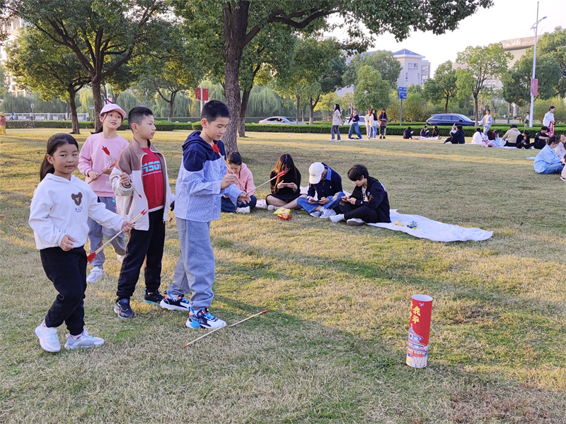 此外,现场还设置了许多趣味游戏。同学们可以参与射箭、投壶、下象棋等游戏。同时,许多小朋友也参与其中,为现场增添了许多欢声笑语。