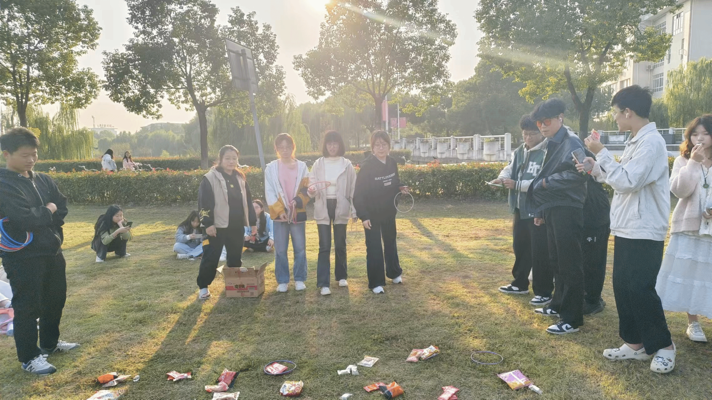 最后,全班同学进行了团建游戏活动,主要有:套圈抢零食游戏,硬币游戏,老鹰抓小鸡游戏,胡辣汤游戏等。这些游戏不仅考验了同学们的身体素质和团队协作能力,更在无形中传递了相互信任、彼此支持的团队精神。