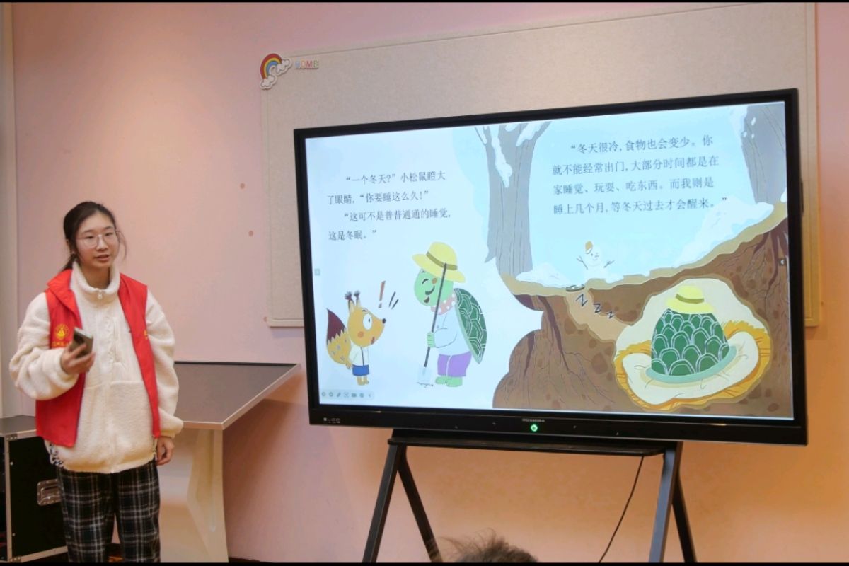 活动伊始,志愿者刘维为小朋友们带来了一场生动有趣的动物冬眠绘本宣讲。通过图文并茂的讲解,介绍了各种动物的冬眠习惯,让小朋友们对动物世界有了更深入的了解。同时,志愿者还特别指出,由于环境污染和过度砍伐,一些动物无法正常冬眠,生存受到威胁。这一环节不仅增强了小朋友们的环保意识,也让他们深刻体会到保护环境、爱护动物的重要性,体现了雷锋精神中的奉献和关爱。随后,志愿者吴静怡组织了“摇摆小雪人”手工活动。在志愿者的指导下,小朋友们运用各色卡纸,充分发挥想象力,制作出了形态各异的小雪人,在锻炼小朋友们动手能力的同时,也让他们在欢乐的氛围中告别冬天,迎接春天的到来。小雪人的摇摆姿态,仿佛在向世界宣告春天的来临,也为本次活动增添了一抹亮丽的色彩。
