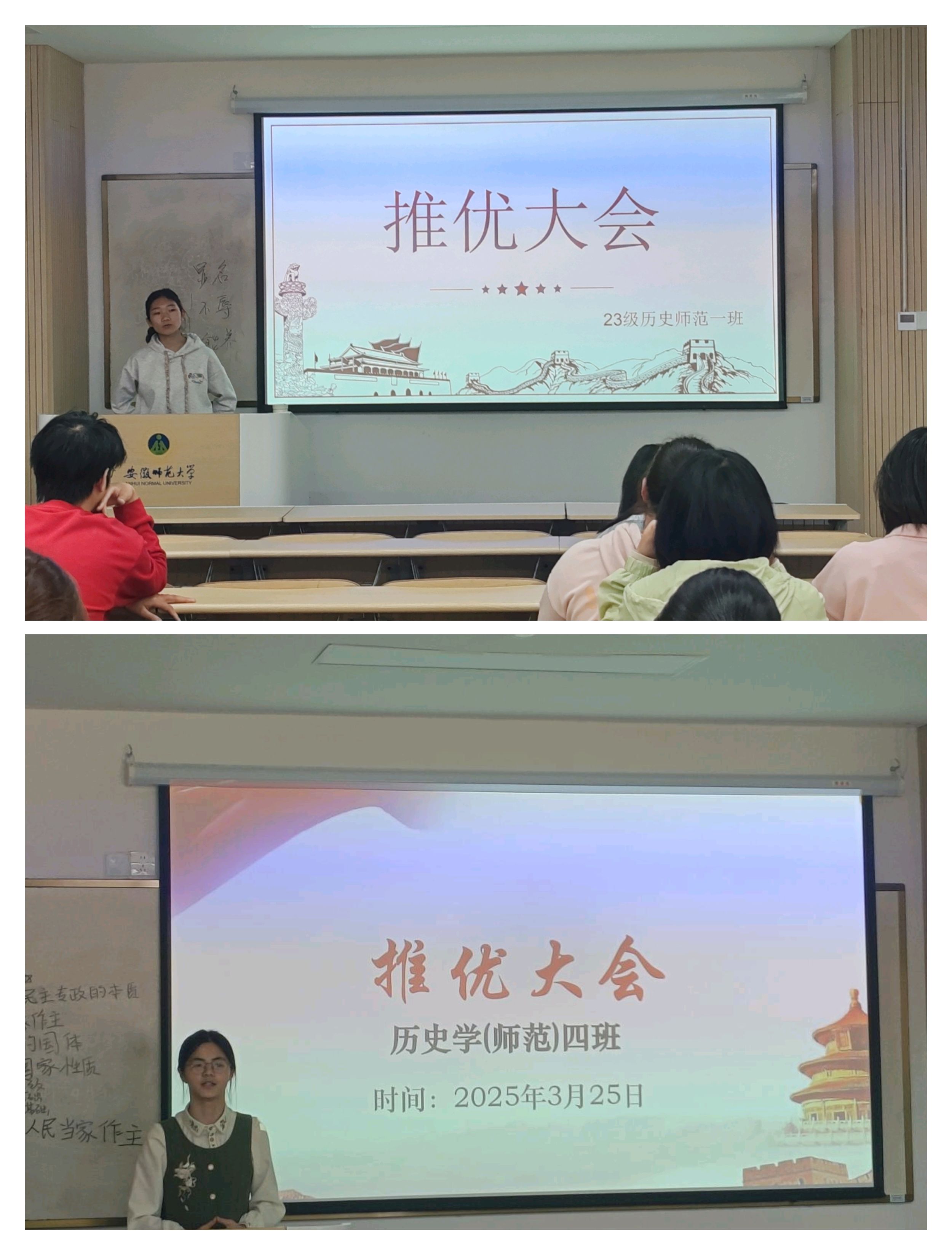 为选拔优秀青年加入共青团,为团组织注入新鲜血液,增强团组织的凝聚力与战斗力,2023级历史学、世界史专业在辅导员胡文新的指导下,于2025年3月25日分班级召开了全体团员大会,讨论确定各班团员发展推荐名单。