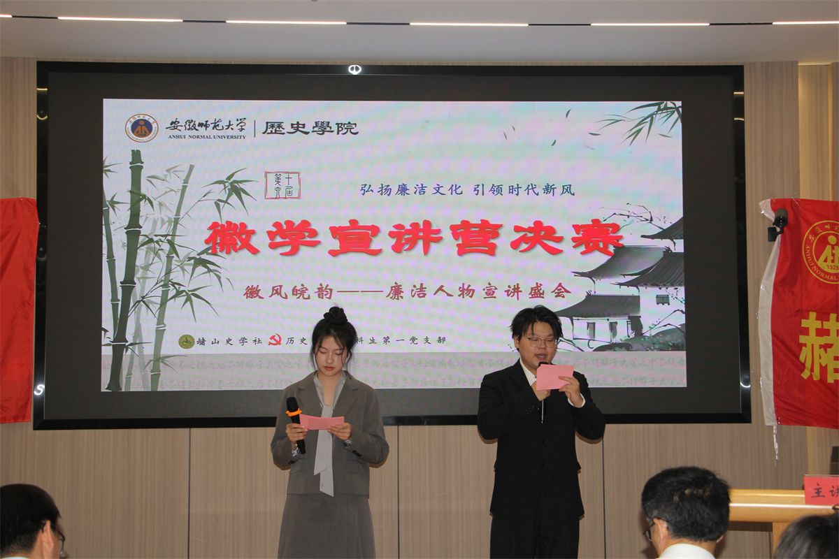 为推动高校廉洁文化建设,4月23日晚,第十六届徽学宣讲营决赛暨廉洁人物宣讲盛会在花津校区文典楼B108报告厅举办,特邀公司纪委办公室纪检监察员李成新,公司党委副书记、纪委书记宫超,赭山史学社指导教师王彦章,公司团委书记朱晓华,本科生辅导员郭忠尧、胡文新、舒斌等担任评委。赭山史学社会员近百人到场聆听观摩。