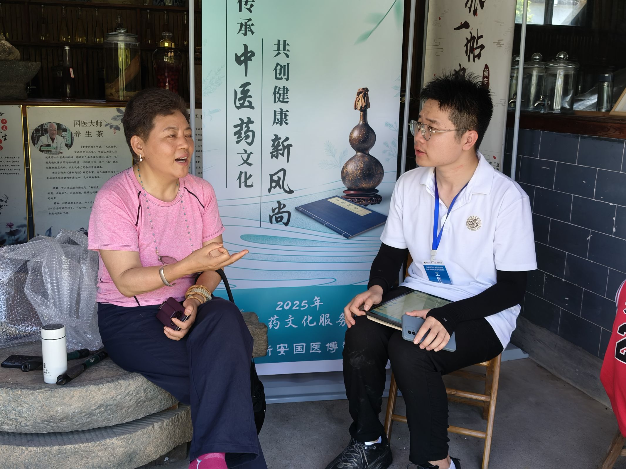 古村技艺传承,新安医学促“康养”。定潭村拥有国家级非遗张一帖内科疗法,成员拜访了张一帖传人——李梃,他结合自身诊疗经验,想队员们分享了自己对于中医诊法传承现状、大众认知、科技融入等认识。定潭村大力弘扬中医文化,设立国医桥、中医文化公园,李梃也努力通过建立张一帖纪念馆、中医博物馆等方式大力弘扬张一帖中医文化。