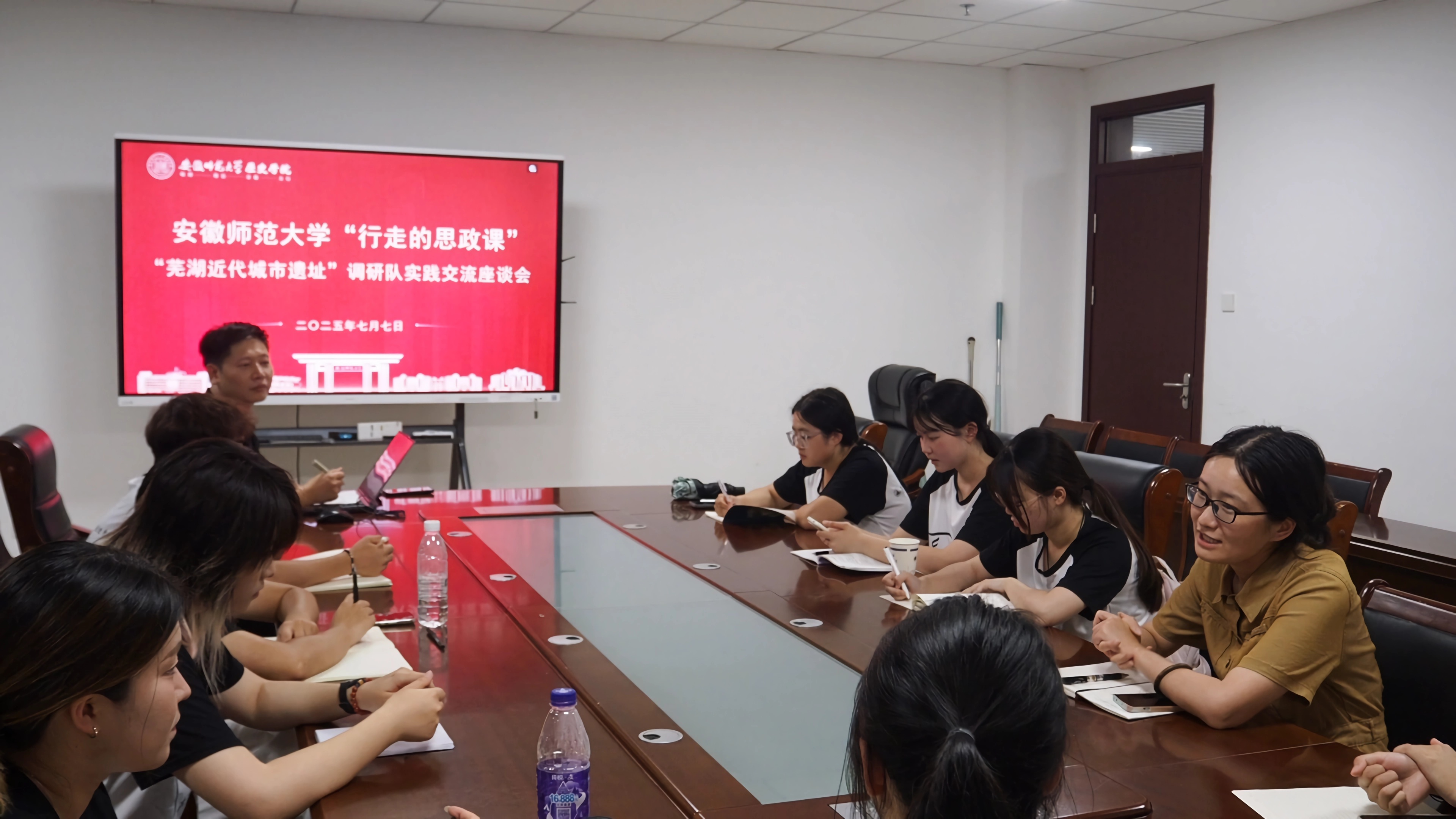 随后,与会同学依次分享心得体会。大家就相关技能提升、历史文化熏陶与团队协调合作等方面讲述了自己的思想变化。组长万朝琴表示,作为本次暑期社会实践团队的队长,如何带好队伍是个不小的挑战,但经过不断地磨合,目标愈发明确,队伍愈发团结,团队成员普遍对齐心协力产出高质成果持有信心。符流烨与曹恢毅聚焦于摄影与宣传工,坦言此项工作是压力更是动力,通过学习与实践切实提升了个人拍摄水平和写作能力。马家圆、孙萍等表示通过社会实践让她们对芜湖有了全新的认识,对芜湖历史文化感触更深。金智贤将芜湖与家乡烟台相联系,从宏观视角认识两地的异同,认为实践有助于学术研究。