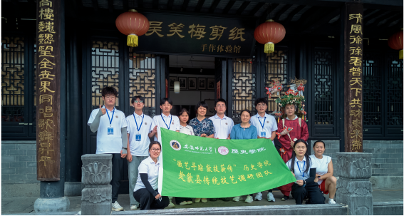 此次调研中,团队见证了吴笑梅20年传承之路的坚守,也见证了徽州剪纸技艺在新时代的创新探索。吴笑梅老师从祖辈耳濡目染学习徽州剪纸到进校园推广徽州剪纸、编著徽州剪纸教材、培养近百位传承人,近期又积极进行创新,推动剪纸技艺与AI技术结合、融合各类日常与文创产品中。徽州剪纸不仅是剪与刻的技艺,更是徽州民俗、文化精神的载体。