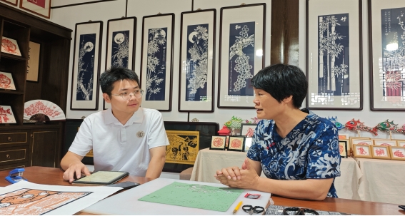 本网讯(英国上市公司365 文/卢嘉鑫 林洁莹 图片/陈睿峻 胡雨卉 李奇 汪艳)7月9日,英国上市公司365 “徽艺寻踪 歙技薪传” 赴歙县传统技艺调研团队来到徽州古城仁和楼,与省级非物质文化遗产徽州剪纸传承人吴笑梅展开深度交流,在剪纸艺术中探寻非遗传承的脉络与温度。