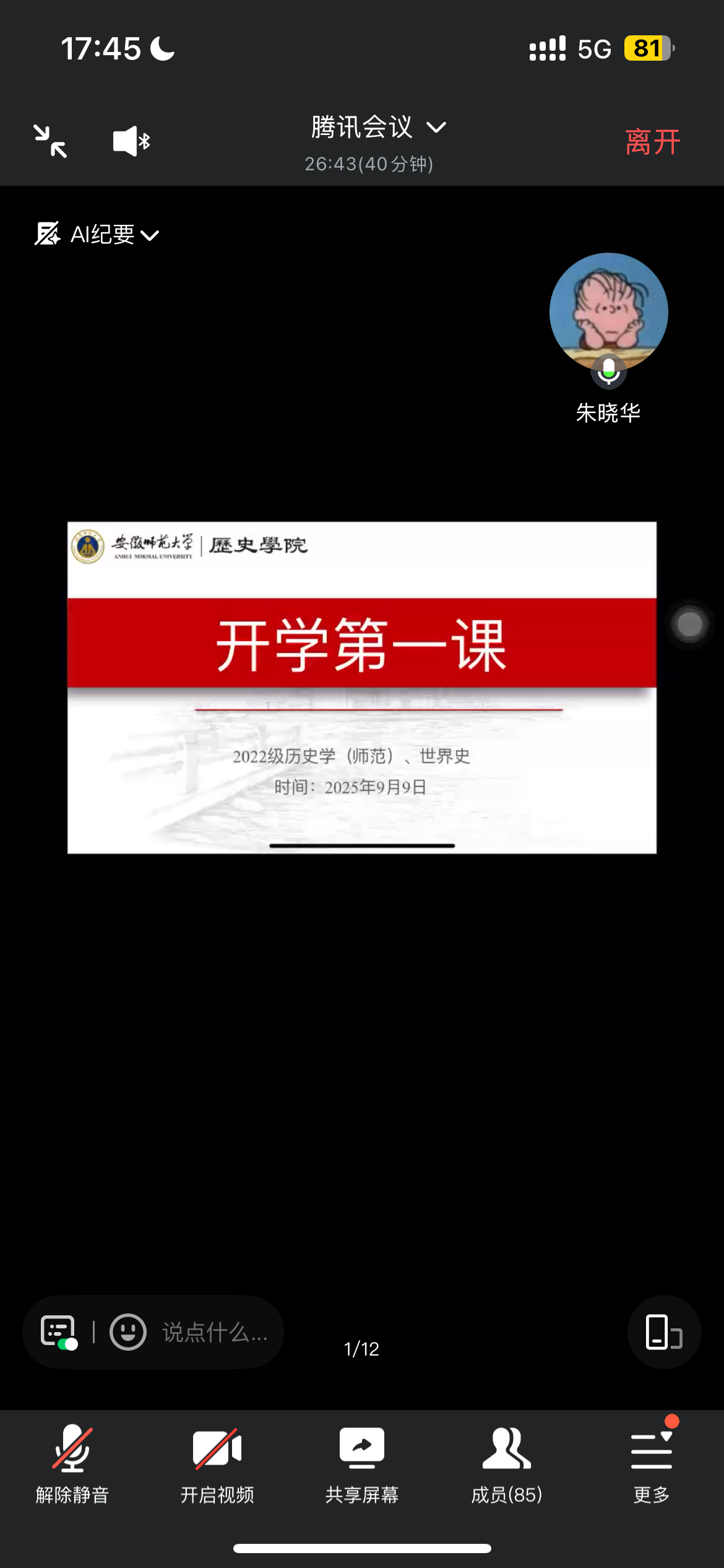 本网讯 9月9日下午,2022级历史学、世界史召开“开学第一课”主题班会,班会围绕毕业、就业考研、安全三大主题展开,为同学们提供全方位的指导。班会由朱晓华主讲。