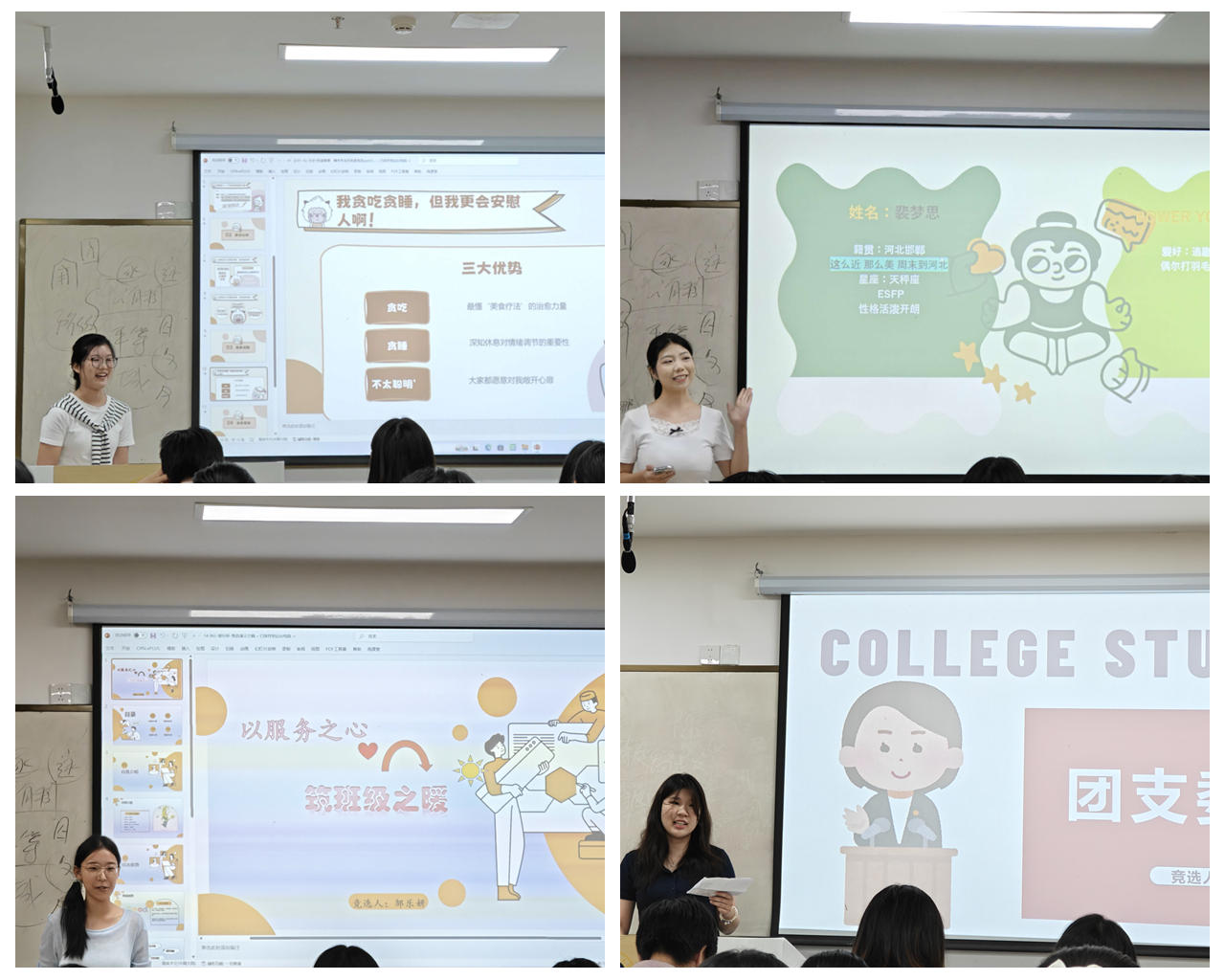 韩雪老师简要介绍了竞选规则与流程,并分发竞选名单,竞选正式拉开帷幕。参选同学按学号依次上台,结合PPT进行限时三分钟的竞职演说。大家从容自信,充分展示自身优势,阐述对所竞岗位的理解与规划,并承诺将以饱满的热情与严谨的态度投入未来四年的班级服务,携手集体共成长,共筑优良班风。现场气氛热烈,同学们认真聆听,郑重投出选票。最终,各班各选举产生班委会成员。