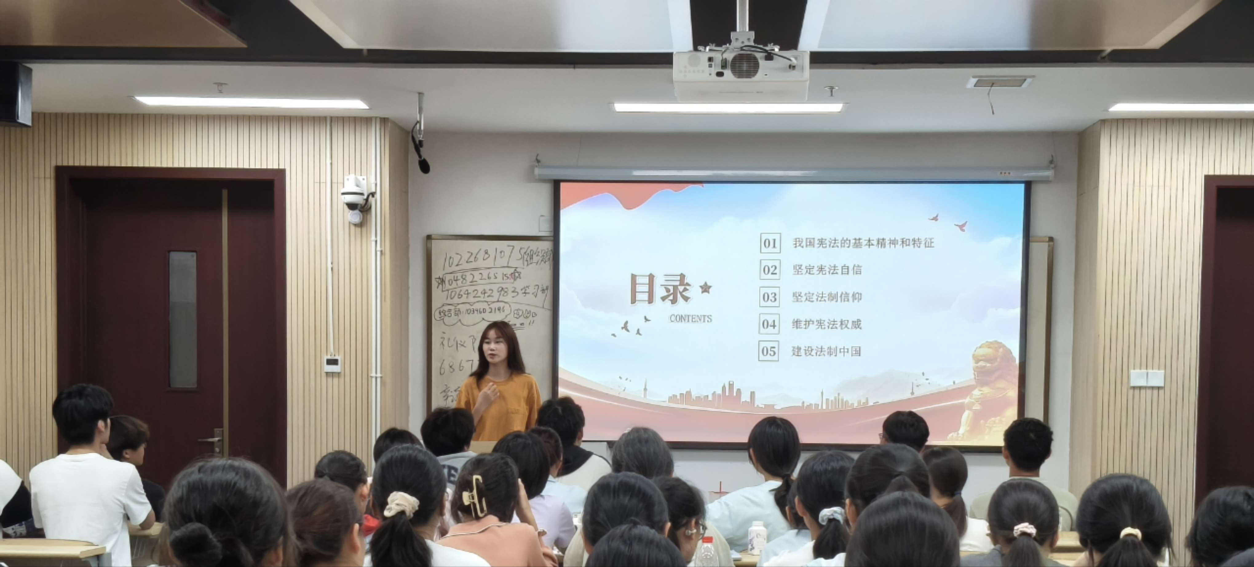为弘扬宪法精神、坚定法治信仰,2025年9月25日晚,世界史专业召开“弘扬宪法精神”主题班会。班会由辅导员周佳妮主持,2025级世界史专业全体同学参加。