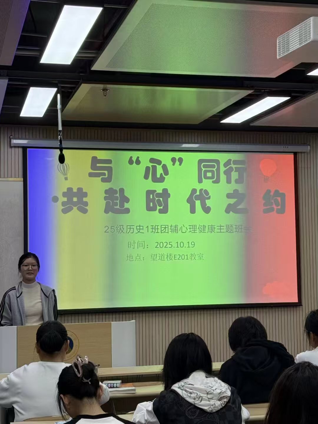 为积极响应公司“10·25”心理健康月的号召,普及心理健康知识,营造积极向上的班级氛围,2025年10月19日,25级历史1班在望道楼E201成功举办了“与‘心’同行,共赴成长之约”心理健康主题班会。