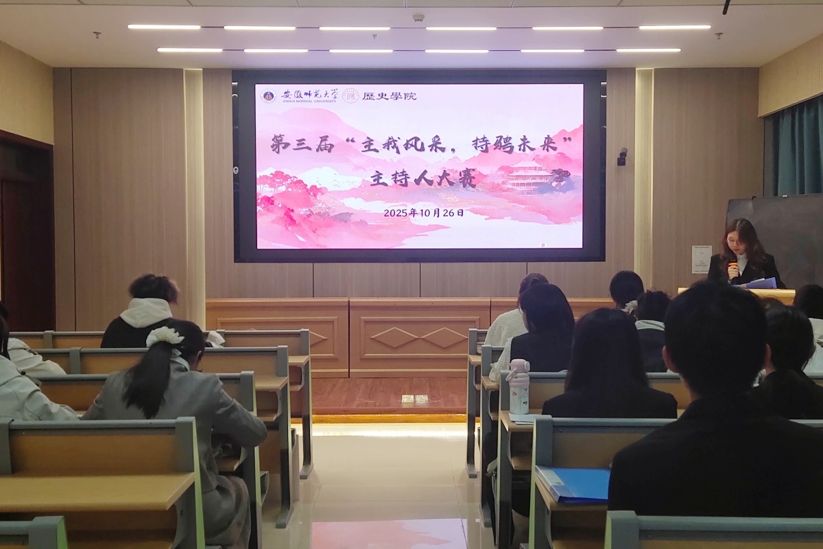 大赛共分为两个环节。第一环节为风采展示,9名选手依次进行自我介绍与自备主持稿展示,他们以流畅的语言表达、沉稳的台风表现以及新颖的内容设计,展现出扎实的主持功底与对历史文化的深刻认知。第二环节为深度创作,选手依据赛前抽签确定的主持节目类型与主题独立完成撰稿,在舞台上进行完整呈现,他们的史学积累与临场表现获得了评委和观众的一致认可,台下掌声持续不断。周佳妮对此次大赛进行总结点评。她对选手们在赛事中的表现给予高度肯定,从主持技巧打磨、仪容仪表整理等方面提出建议,鼓励同学们主动把握机遇、积累实践经验,充分发挥自身才能,争取在更广阔的舞台上发光发热。