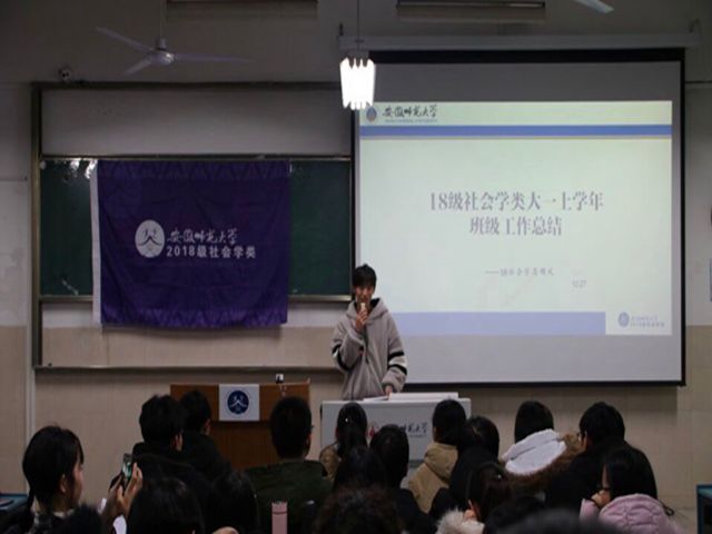 本网讯(周风)为进一步加强班集体和团支部建设,充分发挥班委自我教育、自我管理和自我服务中的重要作用,2018级社会学类班级于12月27日在固定教室2050101举行班委工作总结汇报会,辅导员韩雪和18级社会学类班级全体同学参与本次汇报。