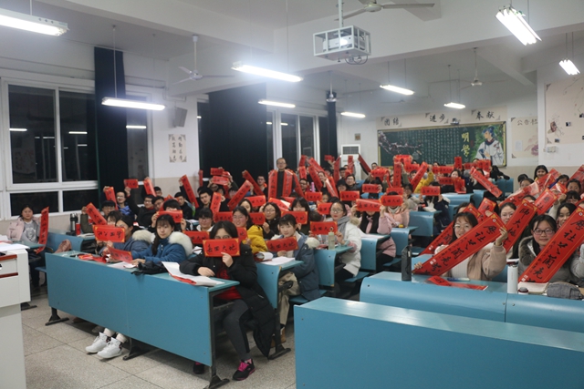 班会最后,宫老师给大家发放了由著名教授书法家庄华峰老师撰写的新春对联,“师大桃李逐繁茂,历社芝兰竞芬芳”,象征着公司老师对莘莘学子们的关爱与美好祝愿。