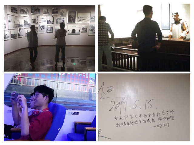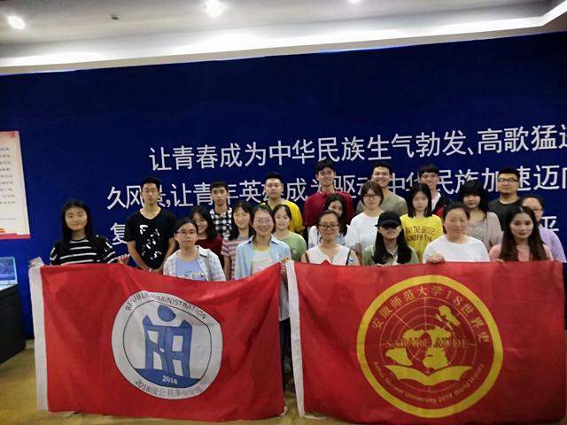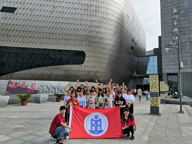本网讯(18世界史 华婉蓉)为了丰富同员工活,提高同学们的文化素养,5月19日,18世界史和18公管在辅导员赵发的带领下,参观了芜湖市博物馆。