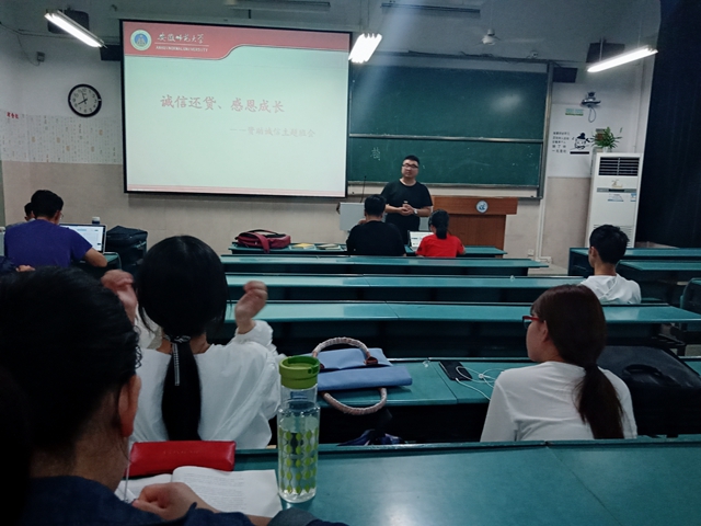 (本网讯 18世界史 华婉蓉)为落实国家资助政策、发挥资助育人功效,让同学们更全面地了解各项奖助学金的申请处理与还款程序,18级世界史专业于5月27日晚上7点半,在行知楼2040101教室开展了资助诚信教育主题班会。会议由辅导员赵发主持。