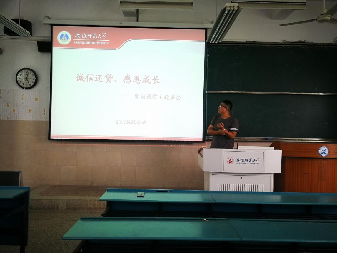 (本网讯 张煜)为帮助同学们树立诚信意识,培养诚信品德,塑造诚信行为,2017级社会学于5月24日下午在2040101教室展开资助诚信主题班会,班会由辅导员赵发主持。