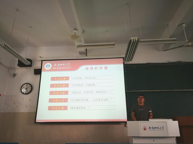 班会一开始,赵发老师就用PPT生动的向我们展示广为人知的几个社会失信现象:毒奶粉事件、地沟油、老鼠羊肉和假酒假药等,用触目惊心的图片说明了失信造成的严重后果,沦陷的不仅是品德,还有良知。而对于老员工,小到抄作业、考试作弊,大到借贷不还等都是失信行为的表现。赵发老师告诫我们只有心存敬畏,严于律己;慎独慎微,襟怀坦荡,方可顶天立地做人,坦坦荡荡做事。