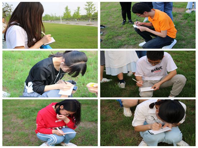 活动第二项,我与青春有个约。由团支书给每个团小组发放四张明信片,各小组成员在环校走结束后手写青春宣言。同学们拿到明信片后专注地写下自己的心里话。活动最后,全体同学以团小组为单位列队合影。