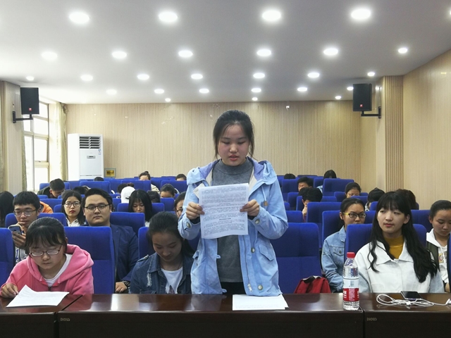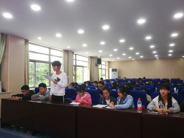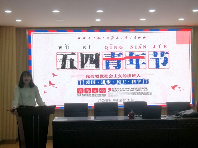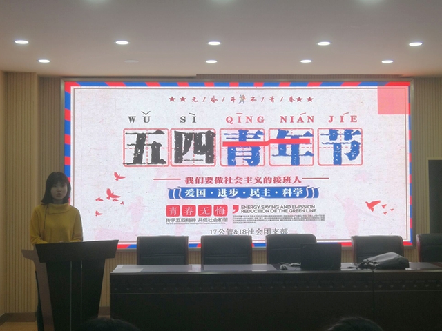 本网讯 (刘顺)为深入学习习近平总书记在中央政治局第十四次集中学习会上的重要讲话精神,进一步加强对五四运动历史的了解,传承弘扬“爱国 进步 民主 科学”的五四精神。17级公共事业管理专业与18级社会学类专业全体员工于4月26日下午3点在历史与社会公司二楼会议室开展了“弘扬五四精神,牢记自身使命”主题团日活动,17级公共事业管理团支书刘蓉婕主持此次活动。