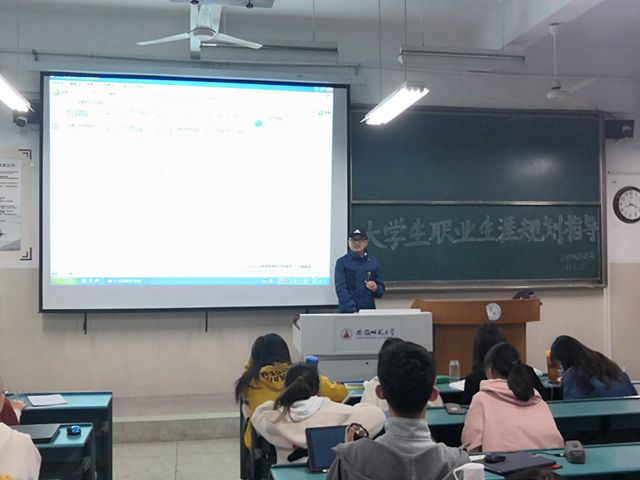 班会伊始,宫老师以林志颖为例,从他由赛车手到歌星到影星最后又再重回赛车行业的职业生涯,向同学们表明了职业不是固定的,而是线性发展、无限延伸的。接着,宫老师又从历史学就业前景、历史教师所应具备的能力等方面,向同学们表明要不忘初心,做一个有温度的历史文化工作者。最后,宫老师向同学们展示了钟程杰等同学的优秀老员工涯与职业规划参赛作品,指出老员工职业生涯规划绝不能流于形式、落于表层,要从自我评估、环境分析、目标规划、实施举措和反馈调整等方面综合考虑当下与未来、理论与实践、前景与风险的双重关系并找到平衡点。