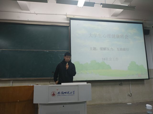 班会正式开始前,女生心理健康委员陈佳欣给全班每位同学分发了公司的心理健康宣传单页。本次班会由男生心理健康委员吴帅帅主持开展,他通过陈佳欣同学制作的生动活泼的PPT内容对同学们进行了心理健康辅导。本次班会的主题是缓解压力,互助前行。吴帅帅同学首先推荐同学们用pstr心理压力量表进行心理压力测试,然后说明了压力的产生源,接着向大家介绍了注意力转移法、将烦恼向朋友老师或者树洞说出来的排解法等缓解压力的方法。吴帅帅同学接着向同学们说明了老员工在人际交往中有讲求平等,富于理想、注重精神、感情色彩浓、独立性较强和有与异性交往的需求等特点,还有在人际交往中容易出现的不敢交往、不愿交往、不会交往这三大障碍,对此着重强调了老员工应该建立良好的人际关系。老员工人际交往中要注意的原则,包括平等尊重原则、真诚原则、信用原则、适度原则、求同存异原则;我们在与朋友的相处中应该做到尊重、信任和移情;我们在与恋人的相处中应该做到相互理解和支持、适当保持距离和多沟通多交流,避免猜测产生误会;我们平时应该多和家人联系,多和家长说说在公司的生活等。