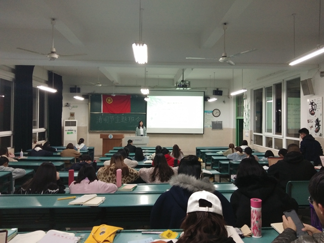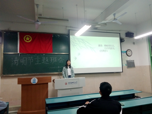 (本网讯18公管章浩东)随着清明将近,为加强宣传传统文化,引导同学们关注,了解传统节日,18级公共事业管理专业团支部于三月三十一日晚七点半在2040104教室开展了清明节主题团日活动。活动由团支书李佳慧主持,团支部全体成员参与。