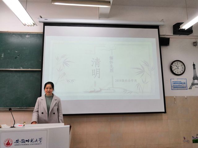 (本网讯 周风)携安宁与先烈对话,许承诺为和平护航,2018级社会学类于四月一日在2050101教室开展了清明·缅怀先烈主题团日活动,辅导员韩雪和全体同学参与本次活动。