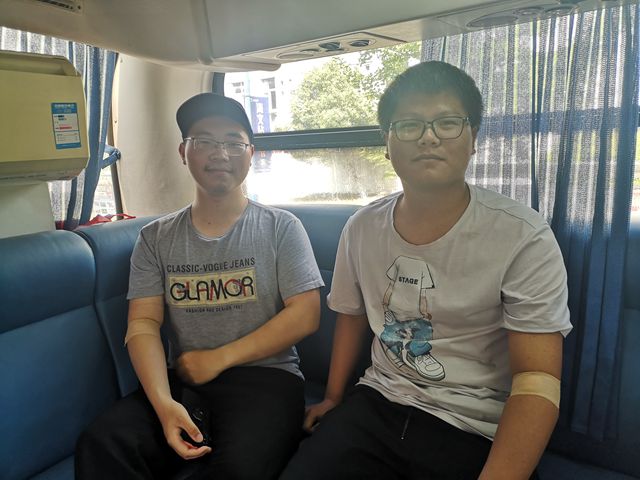 活动开始,同学们便有序地排起长队,依次进行信息登记、血液类型检验、静脉采血等环节。等待献血的过程中,同学们紧张而兴奋,为自己的行动能够给需要的人提供帮助、挽救更多的生命而感到高兴。在献血的大巴上,前来献血的同学纷纷挽起袖子,坐在采血椅上,献出自己的青春热血。