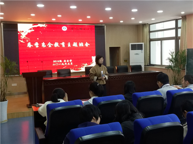 春季是员工安全事件多发期。在安全教育和管理工作方面,杨老师传达了校、院两级工作要求,肯定了16历史自开学以来坚持的每日晚点名和零点报告等安全防范工作,并提醒同学们要遵守请销假及宿舍管理制度,继续扎实做好员工寝室管理工作,用制度保障同学们安全。在会议上,杨老师还对春游活动、流行性疾病防控、食品卫生和心理健康等方面也做了具体提醒,引导同学们依法正确使用网络,理性表达诉求,提高网络道德观和法制观。引导大家树立正确的消费观念,远离不良借贷,防范网络诈骗等。