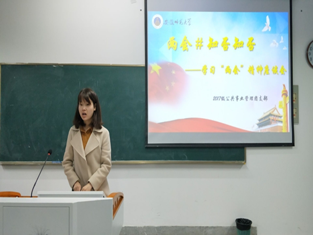 (本网讯 刘顺)天道酬勤,人勤春早。在新中国成立70周年、亿万中国人民向着第一个百年奋斗目标坚定奋进之际,十三届全国人大二次会议、全国政协十三届二次会议圆满完成各项既定议程胜利闭幕。为引导同学们认真学习并贯彻落实两会精神,17级公共事业管理专业全体员工于3月18日上午七时许,在行知楼2070204教室开展了“学习‘两会’精神”座谈会,本次座谈会由团支书刘蓉婕主持。