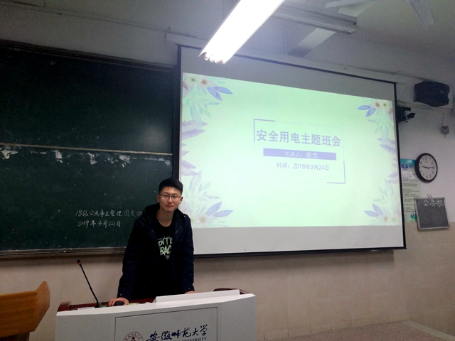 本网讯(18公管 周雷)3月24日,由辅导员赵发指导、生活委员周雷主持的2018级公共事业管理班级春季安全班会在2040102教室举行。此次班会积极响应公司对员工安全的高度重视和广泛宣传,旨在提高班级员工的安全用电意识和规避危险的能力。