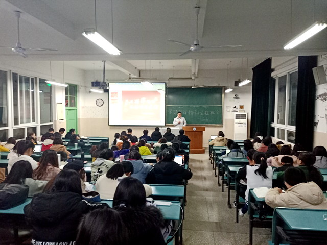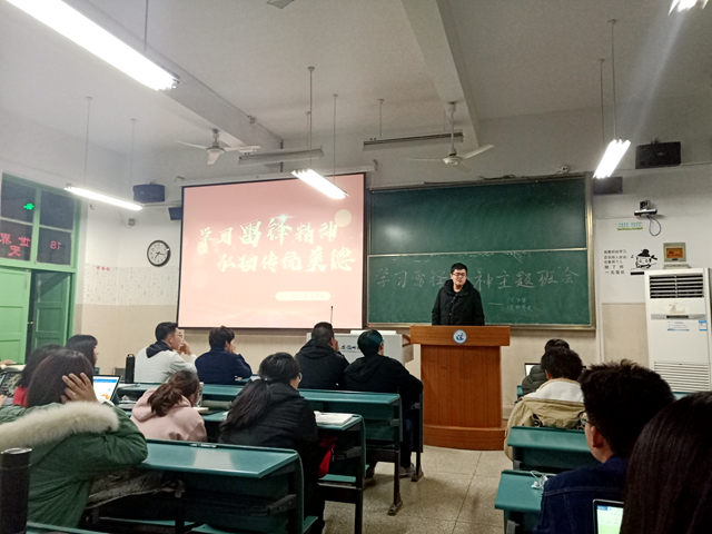 班会开始,公管班班长滕空上台为同学们说明了班会主题和召开目的,并鼓励同学们积极发言,说出自己对学习雷锋精神的理解。