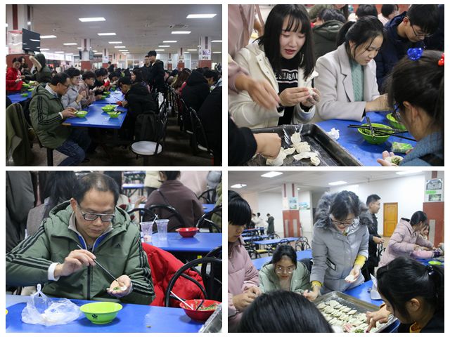 小堂流拥置佳肴,卉然兴道乐今朝。12月22日下午3时,活动正式开始。活动伊始,2017级与2018级的同学进行了简短的交流。随后,在班委的组织下,饺子宴正式拉开序幕。同学们以小组为单位包饺子,老师们也加入其中。盘中的饺子横看成排,竖看成行,井然有序,瓤色外见,柔如春绵,白若秋练。而且每个人包的饺子各具特色,馅多馅少,圆圆扁扁,形态各异。一盘盘饺子下锅,属于同学们的游戏时间也正式开启。游戏是由两组同学进行“演技传声筒”的对决,两组同学互不相让,各显其高超的记忆水平。