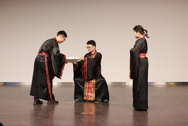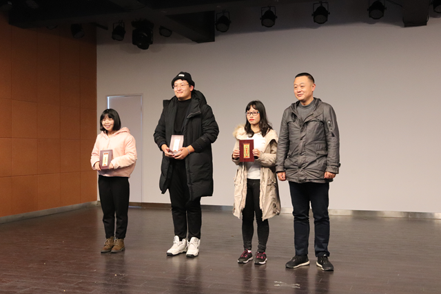 晚上7点,6组作品依次上场。在《荆轲刺秦王》中,易水河畔,荆轲那为了燕国之存亡而不顾生死的行为,展示出了无畏生死的一腔爱国情怀;在《李白》里,与贺知章酒肆深夜漫谈、在唐玄宗与杨贵妃面前醉酒成《清平调词》,演员生动的表演为我们呈现出一个爱喝酒、心系天下的李白;在《改革开放之家庭联产承包责任制》里,……………每组参赛作品从服装、道具到台词、背景等都进行了精心准备,赢得了阵阵掌声。最终,经评委打分,一等奖由《改革开放之家庭联产承包责任制》剧组获得,二等奖是《共和前夜》,三等奖是《荆轲刺秦王》、四等奖是《李白》,五等奖是《长恨歌》、六等奖是《淳于缇萦》。