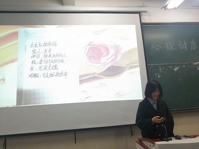 接着,宫老师通过PPT课件,围绕大学新生的入学适应与心理健康,从“什么是心理健康”、“思考大学:变化与困惑”、“适应大学:新生期的心理调适”、“心理普查”等4个方面,结合大学里发生过的真实案例开展心理健康教育,内容生动充实、发人深省。