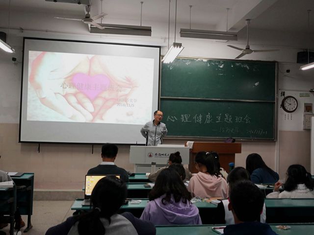 (本网讯 历史学郭淑昕)为提升大学新生的心理健康水平,增强适应能力,11月5日晚,2018级历史学在2050102教室举办了“阳光心态,陪伴成长”心理健康主题班会。班会由辅导员宫超老师主讲,班级全体同学参与。
