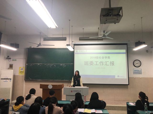 会议最后,辅导员对本次汇报会进行总结,她首先肯定了班委们前两个月的努力和成绩,但也对各班委要兼顾学习与工作提出了要求。同时,辅导员也希望全体同学能更加积极地参与到班级建设中去,通过更多的活动增强班级凝聚力,通过不断地学习提高知识水平,通过各类竞赛锻炼专业技能,使18社会学类朝着更好的方向迈进!