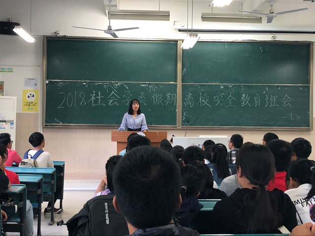 本网讯(周风 俞孟玥)为了引导员工学习安全知识,进一步增强员工的安全意识和自我保护意识。2018级社会学类专业于9月30日下午在2050101教室开展了假期离校安全主题教育班会。