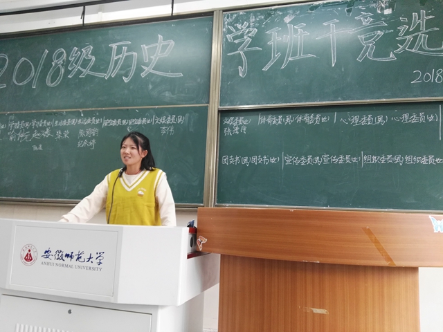 会上,宫超老师首先介绍了竞选规则,要求参与竞选的必须是提前经过深思熟虑并递交了班委申请书的同学。随后,参与竞选的同学纷纷上台竞选演说,他们都认真坦诚地向大家诉说了自己想要竞选的原因和今后的行动,传达出要热心为班级服务的心情,在演讲过程中,同学们有的自信满满,有的略有紧张,有的还带着幽默。最后,通过老师和同学投票、计票等程序后,2018级历史学专业的班委会成员诞生了!