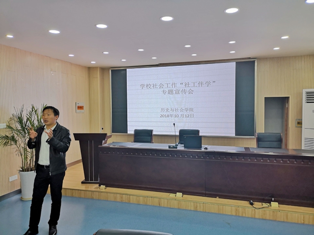 本网讯(18级社会学类 刘魏 周风)为加大公司社工小组“社工伴学”品牌活动影响力,增强2018级社会学类员工专业认同感,10月12日下午两点半,2016级社工小组于公司二楼会议室开展了“公司社会工作‘社工伴学’”专题宣讲会。社工基地负责人王杰、辅导员韩雪、2016级社工小组成员、2018级社会学类班级全体同学参加本次宣讲会。