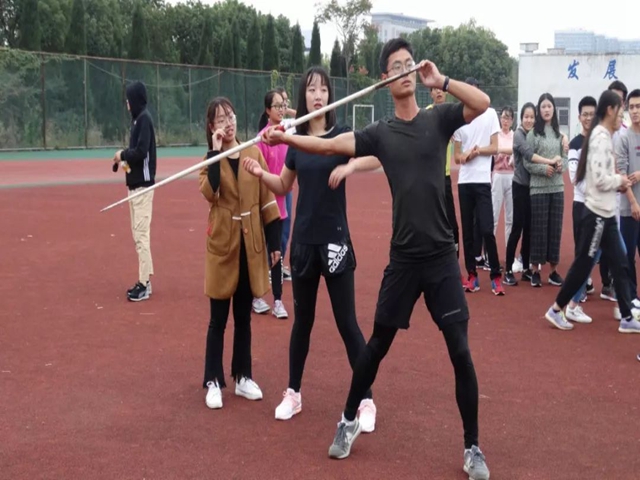 慰问品分发完毕后,运动员们又投入了紧锣密鼓的训练中。三位辅导员宫超老师、赵发老师和韩雪老师与认真配合训练的运动员们展开了亲密的互动。宫超老师和韩雪老师还与标枪运动员们一同训练,尝试起了投掷标枪。